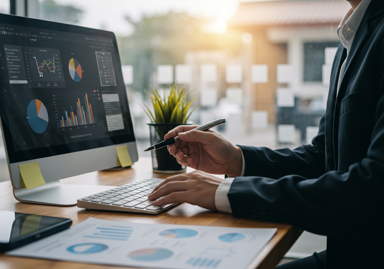 SEO 최적화 전략을 분석하는 한국인 마케터의 모습